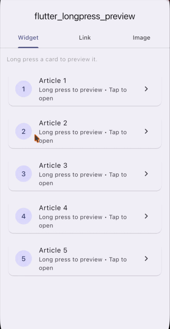 - A Flutter package that shows a preview popup on long press, similar to Safari link preview and Instagram's peek feature.