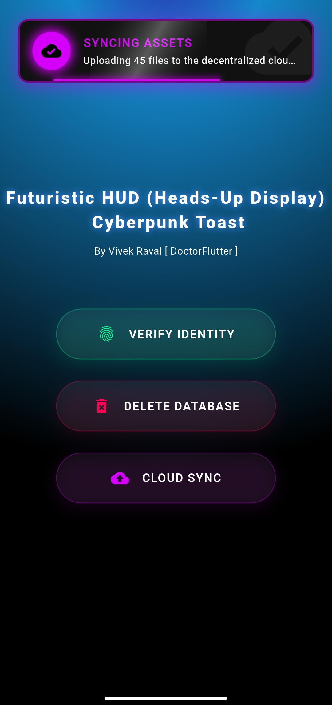 - Staggered Animation: Icon spins, text slides, and progress bar shrinks.