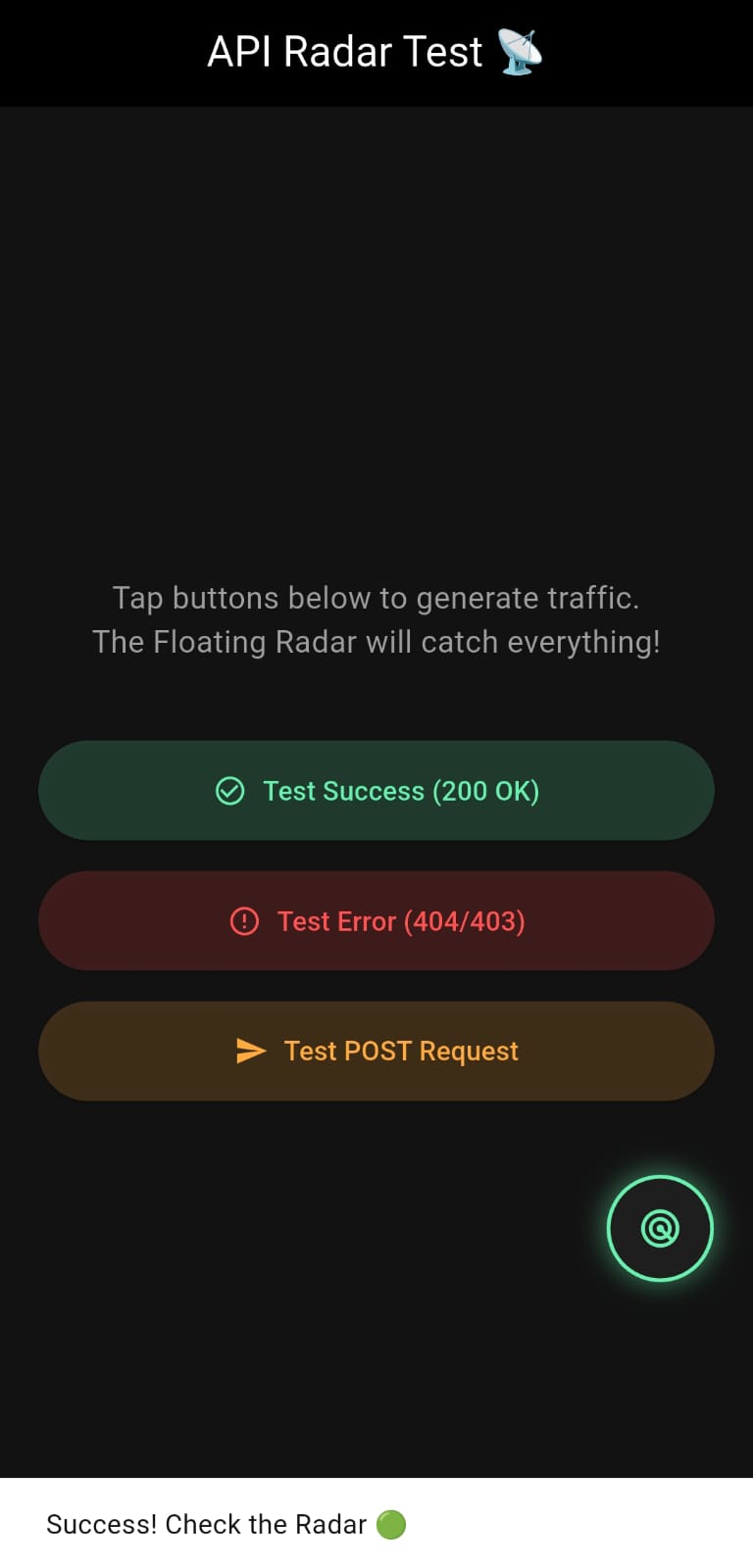 - Add RadarInterceptor to your Dio instance. This connects the "Spy" to your network traffic.