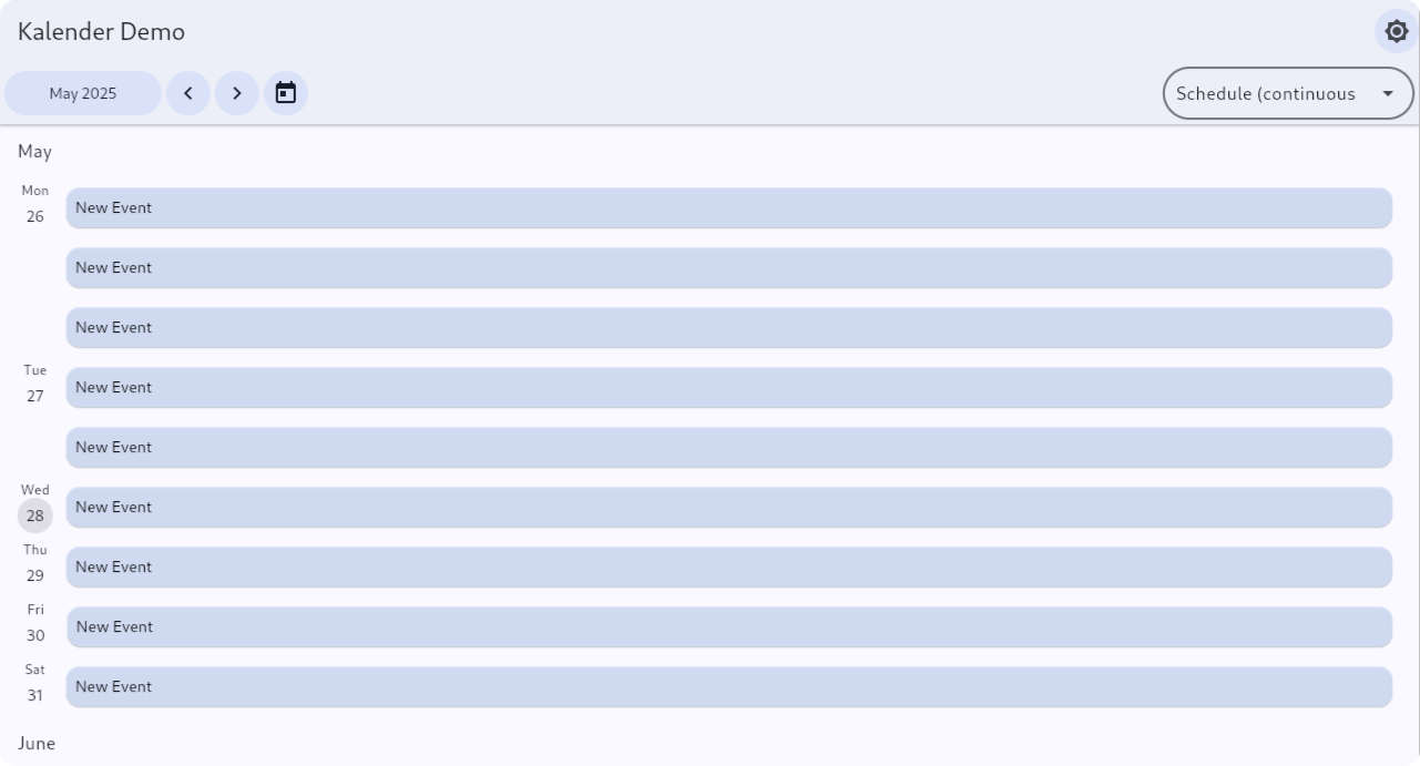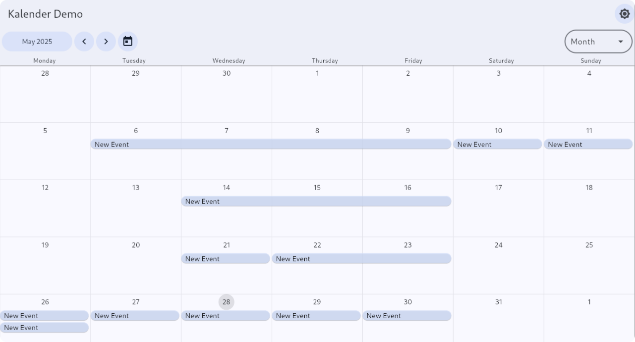 - Extensible events: Attach custom data (title, color, etc.) by subclassing