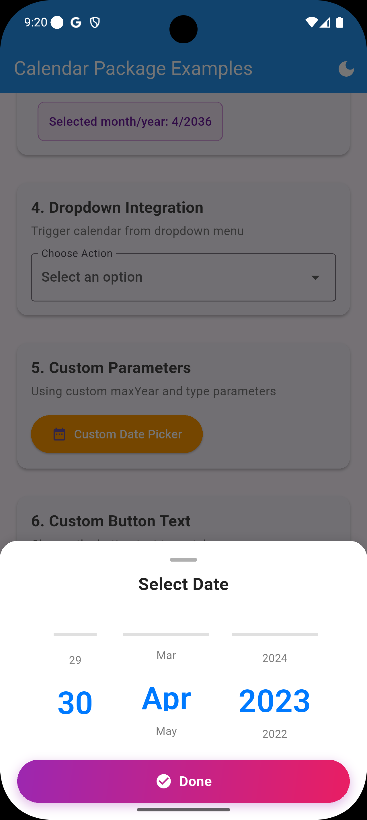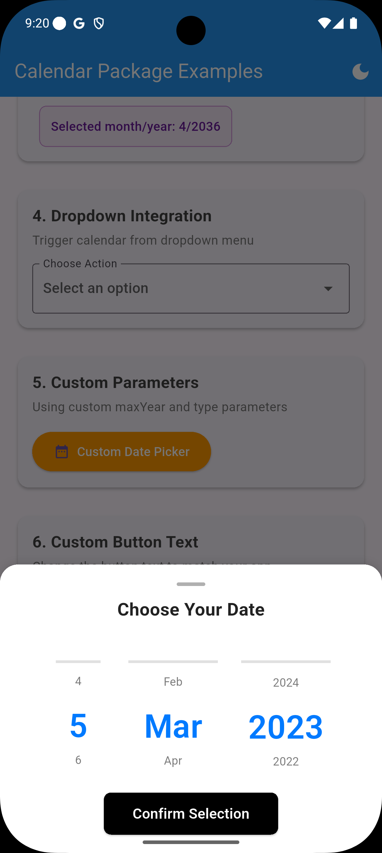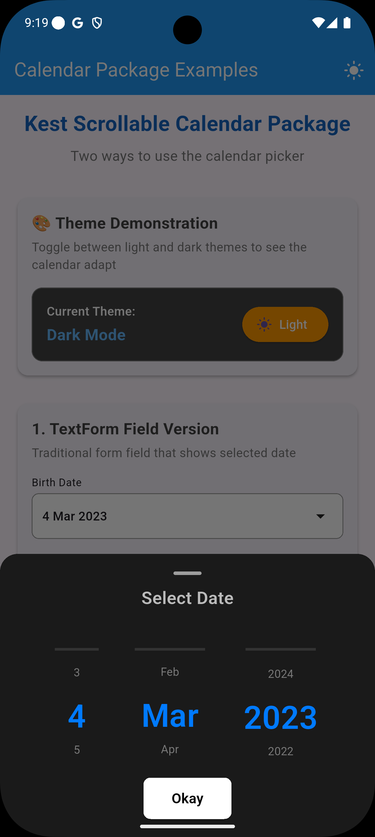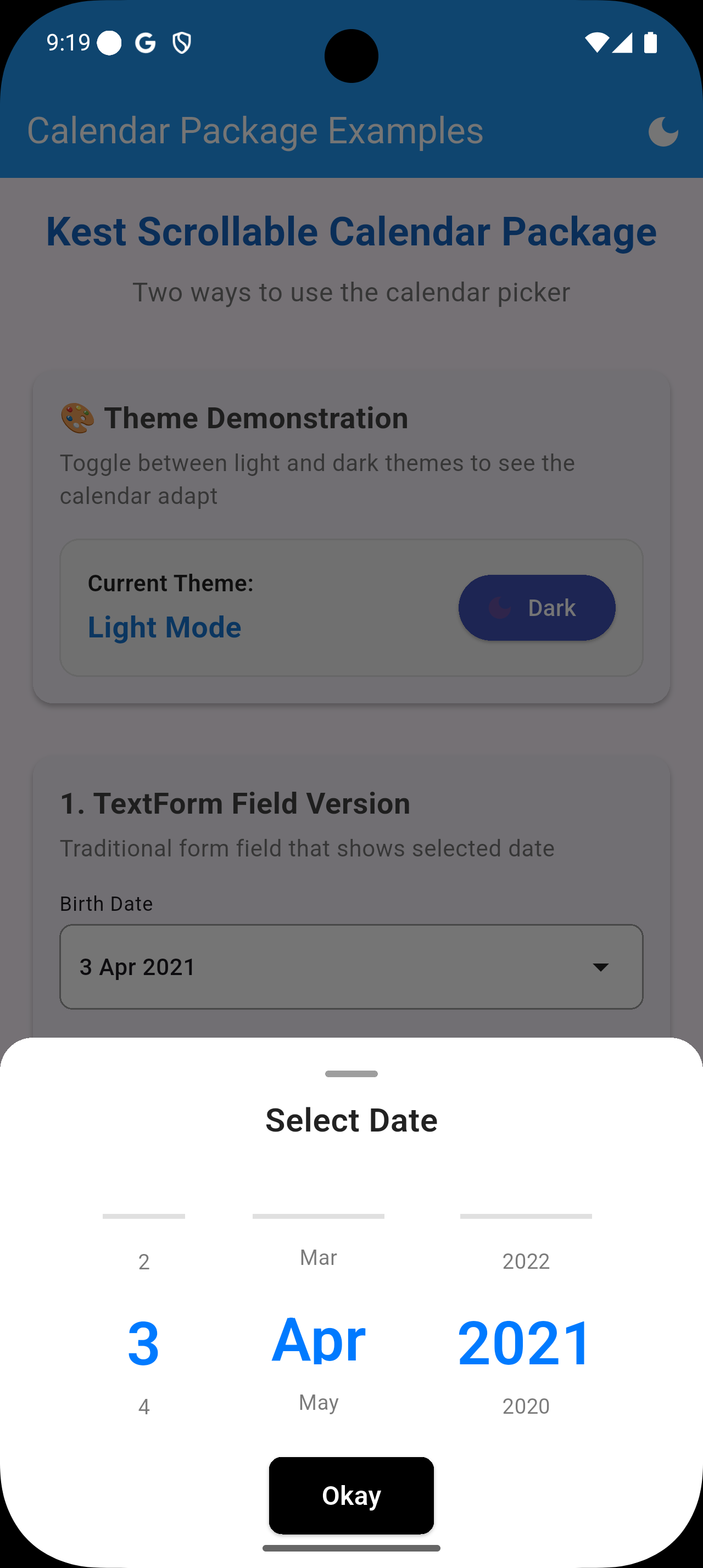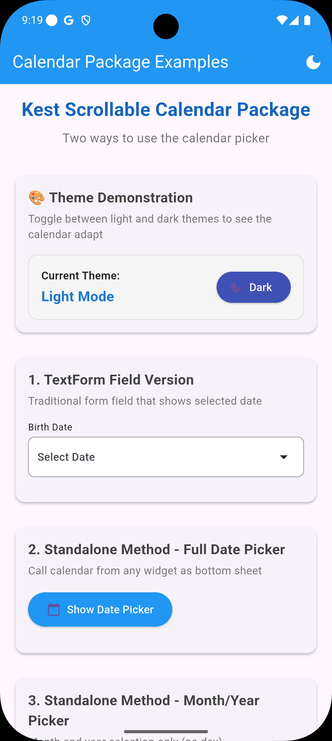 A beautiful, customizable scrollable calendar widget for Flutter that provides both traditional form field integration and standalone bottom sheet functionality.